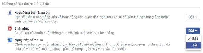 Nếu cảm thấy khó chịu bởi những thông báo về sinh nhật của bạn bè mà Facebook gửi đến, bạn hoàn toàn có thể tắt chúng cũng tại phần thiết lập Thông báo.