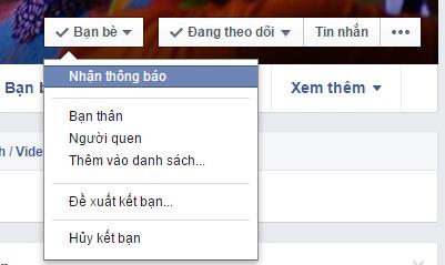 Bạn có thể vào trang cá nhân của một người nào đó (thần tượng, bạn thân, người yêu, …), rê chuột vào ôBạn bè rồi chọn Nhận thông báo để Facebook luôn thông báo đến bạn những hoạt động mới nhất đến từ người này.