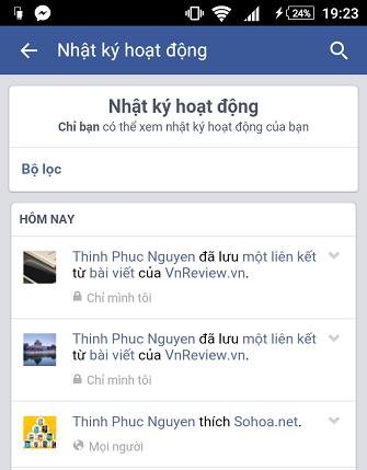 Tính năng Nhật ký hoạt động (Activity Log) hiển thị mọi "động tĩnh" của bạn trên Facebook (like, comment cái gì, được tag với ai, …). Tính năng có thể truy cập dễ dàng từ cả Facebook trên máy tính và di động.