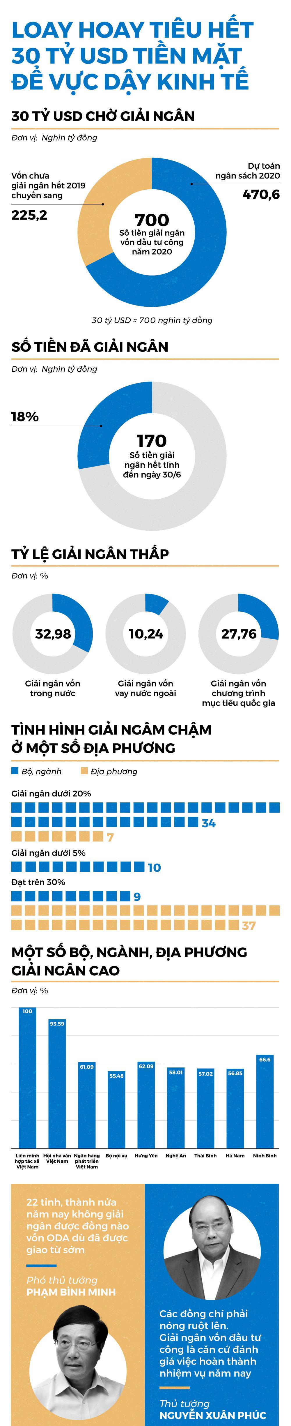 Khoản vốn đầu tư công mà các bộ ngành, địa phương phải giải ngân trong năm nay là 700.000 tỷ (khoảng 30 tỷ USD). Tuy nhiên, nhiều nơi vẫn loay hoay chưa thể giải ngân.