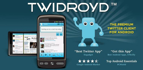 Với một người thích “tuýt” thì Twidroyd là công cụ không thể thiếu trên các máy Android. Ứng dụng sẽ giúp cập nhật nhanh các thông tin từ lên tài khoản Twitter hoặc Facebook của người dùng hoặc hiển thị trạng thái của bạn bè.