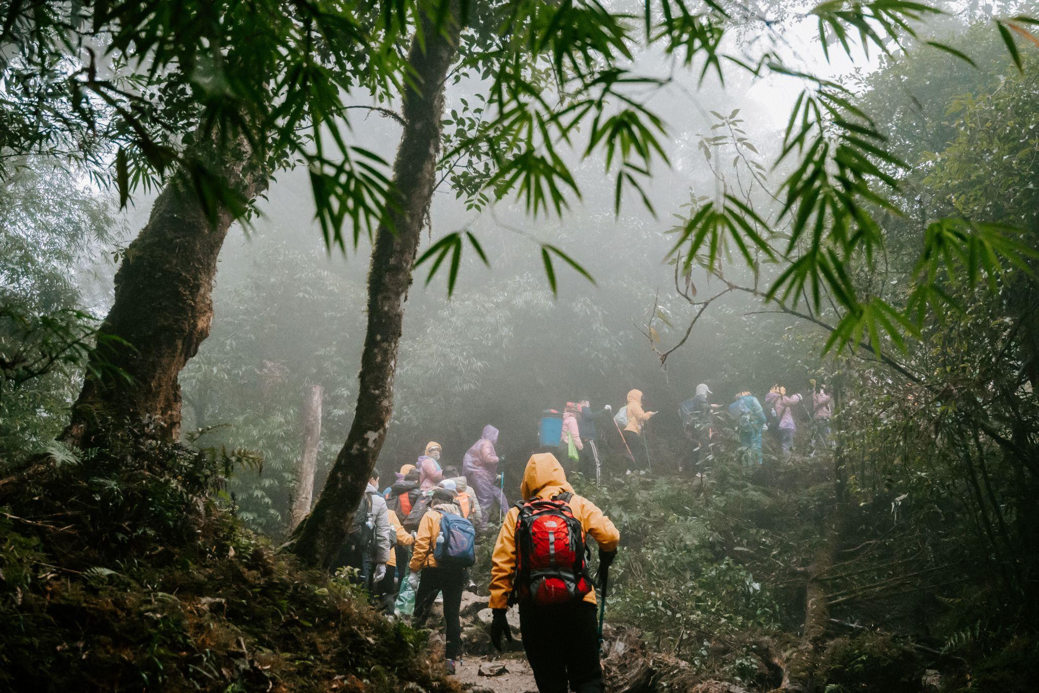 Gần 6h sáng, cả đoàn bắt đầu hành trình chinh phục đỉnh Fansipan. Lộ trình từ Trạm Tôn (1934m) đến trạm nghỉ đầu tiên tại cột mốc 2.200m gói gọn trong 2 từ “mờ mịt”. Mặt trời chưa lên kết hợp với sương mù dày đặc khiến đoàn nhích từng bước một. Đoàn người dựa vào những ánh sáng ít ỏi, những lời nhắc nhở của poster và đồng đội để bước qua quãng đường khó khăn. Quãng đường tuy không dài nhưng phải mất tới 3 tiếng đồng hồ để hoàn thành cột mốc.