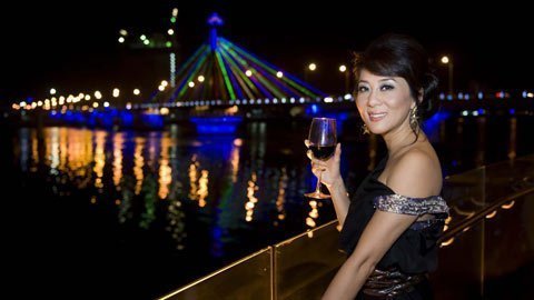 | MC Nguyễn Cao Kỳ Duyên rất thích phong cảnh tại quán vì tại đây chị có thể ngắm được cầu sông Hàn rực rỡ về đêm. |