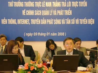 Thứ trưởng Lê Nam Thắng trả lời trực tuyến ngày 9/1/2008 tại trụ sở Bộ Thông tin và Truyền thông. |