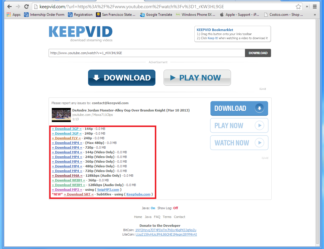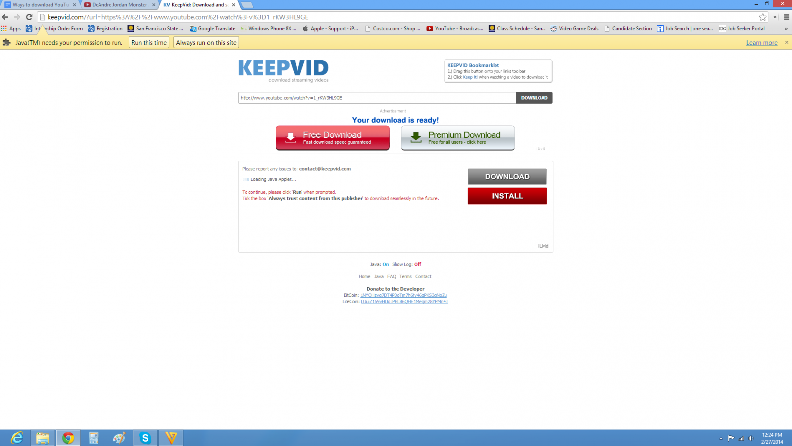 Bước 3: Trình duyệt sẽ hỏi bạn có muốn chạy Java trên trang www.keepvide.com hay không. Bạn click nút Run this time.