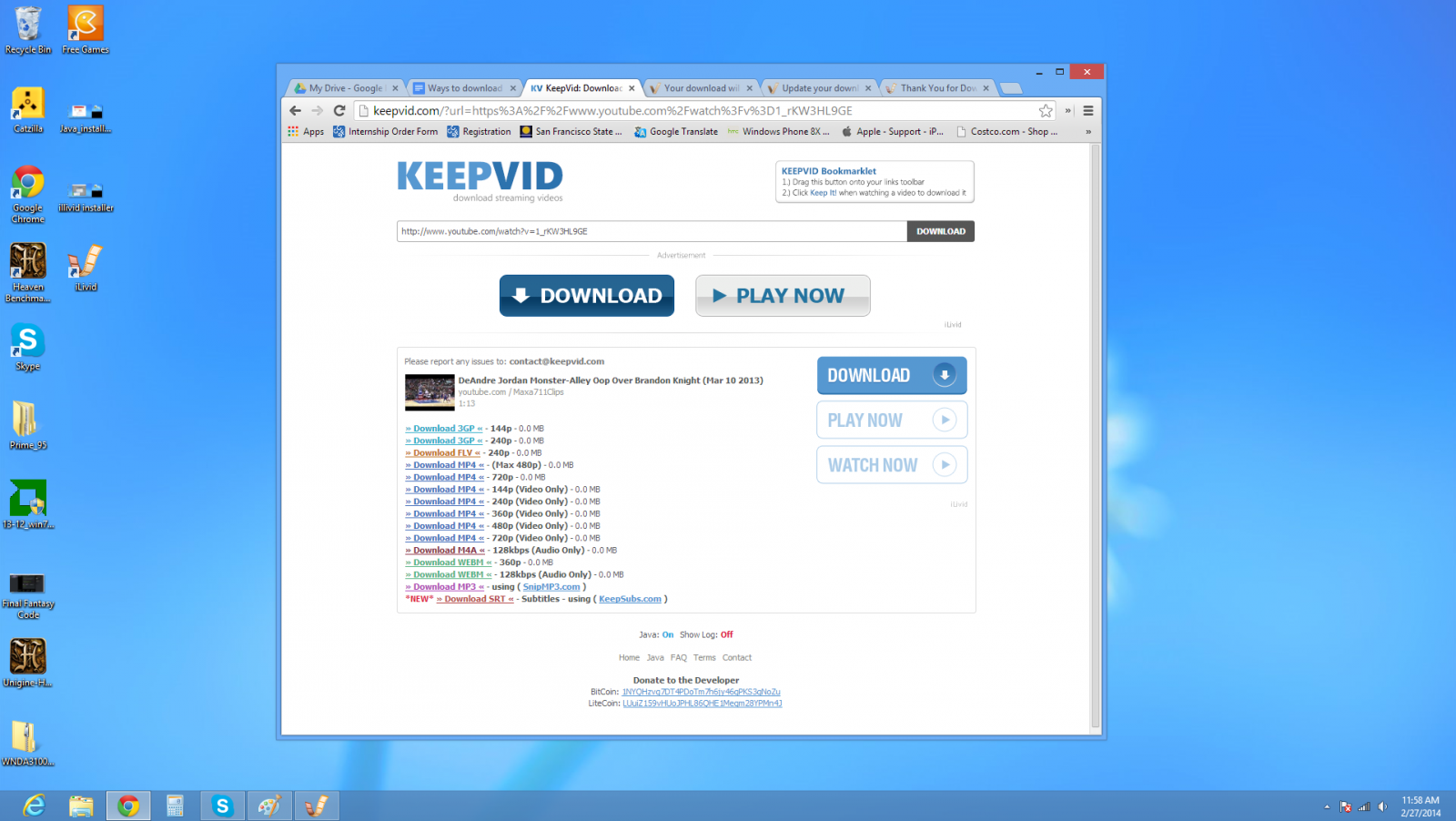 Bước 4: Chọn định dạng và độ phân giải bạn muốn và nhấn nút Download để bắt đầu tải. Chú ý: Nút Download màu xanh thực ra là một đường link quảng cáo, nên bạn đừng click nó.