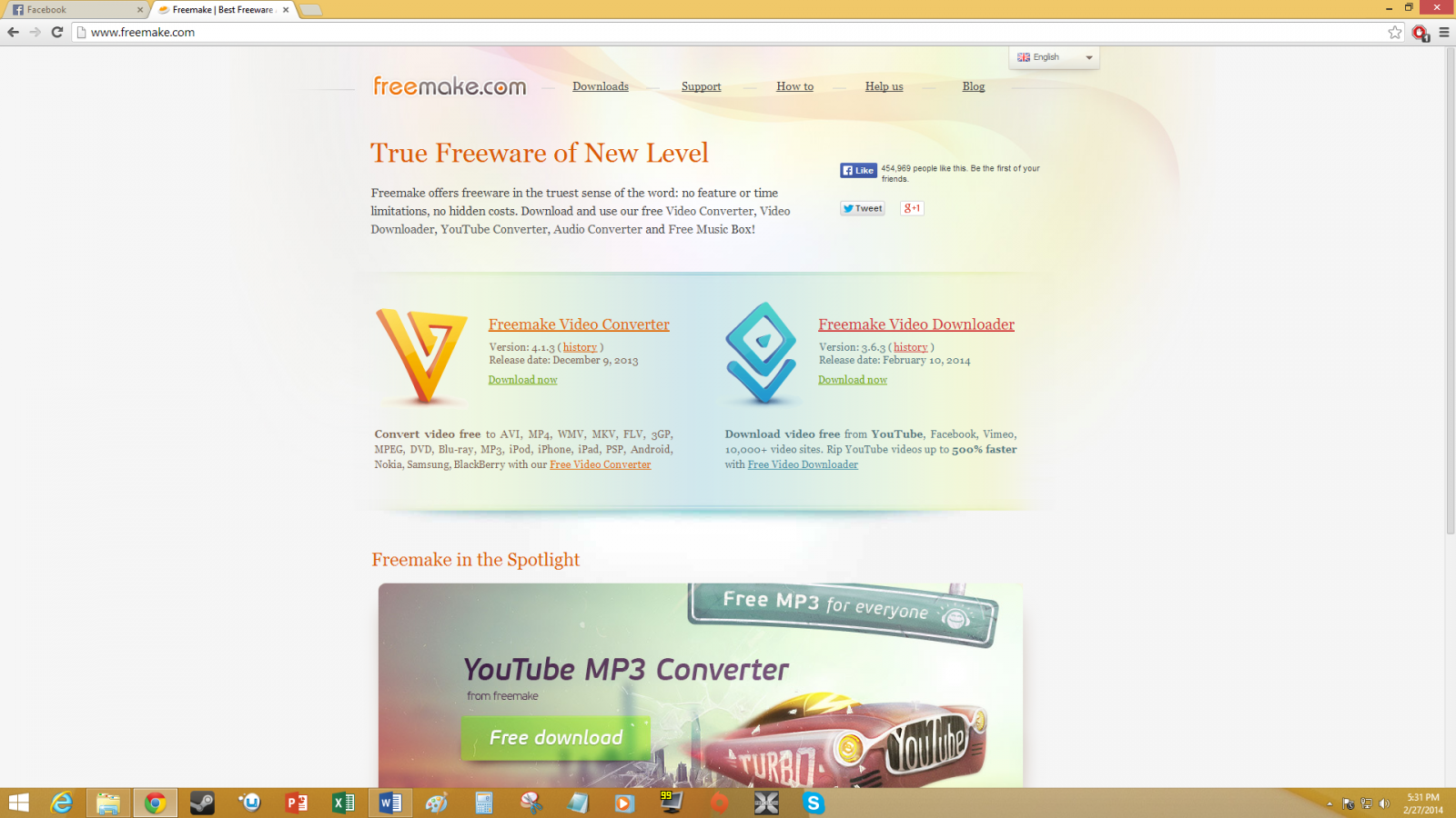 Bước 1: Truy cập trang www.freemake.com và click vào dòng Download Now màu xanh để tải file cài đặt.
