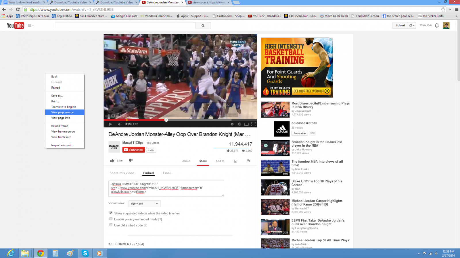 Bước 2: Vào Youtube và mở đoạn video muốn tải. Tiếp đến nhấn chuột phải vào một vùng trống trên trang và chọn dòng Page Source.