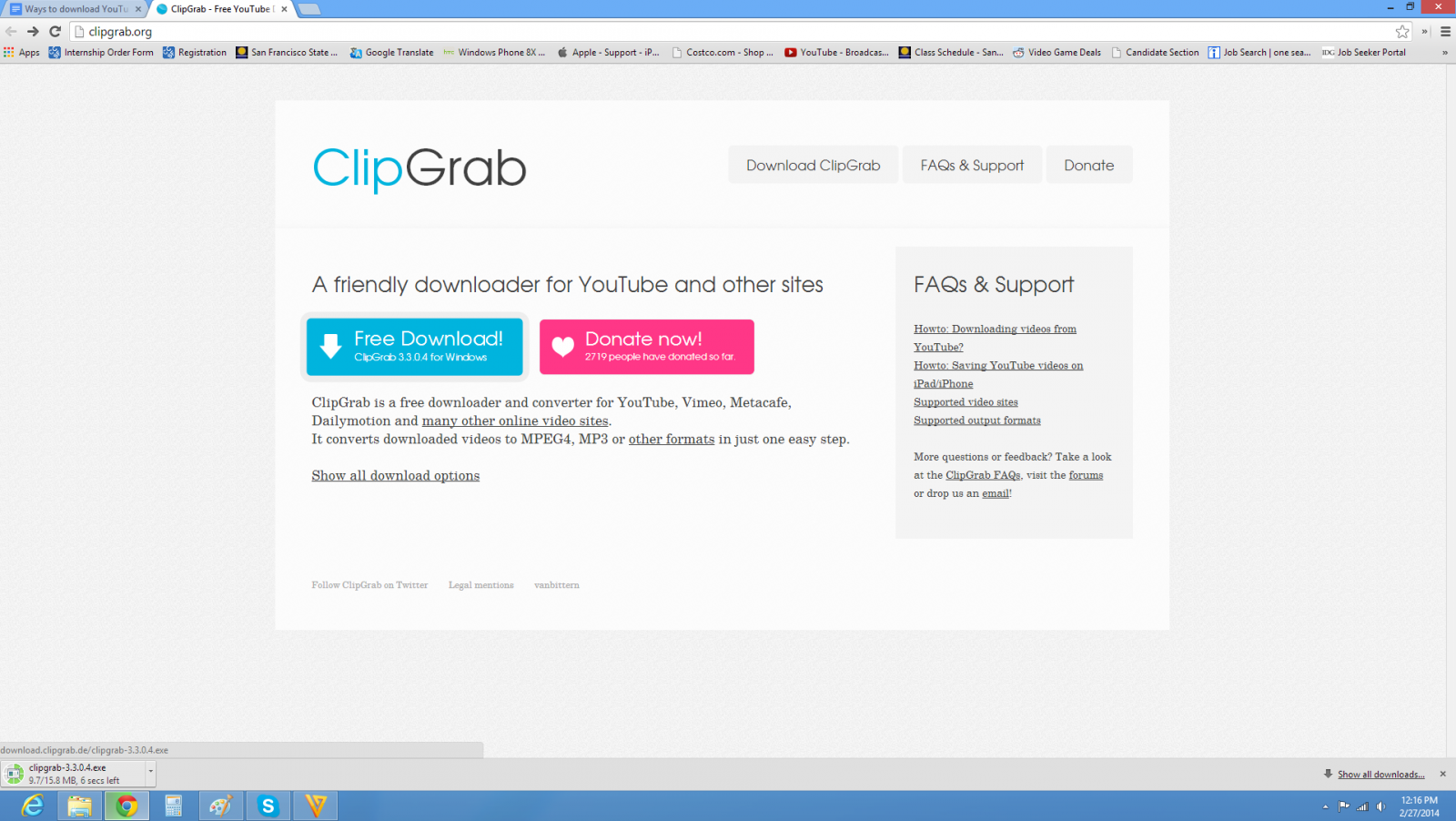 Bước 1: Truy cập trang www.clipgrab.com và click nút Free Download.