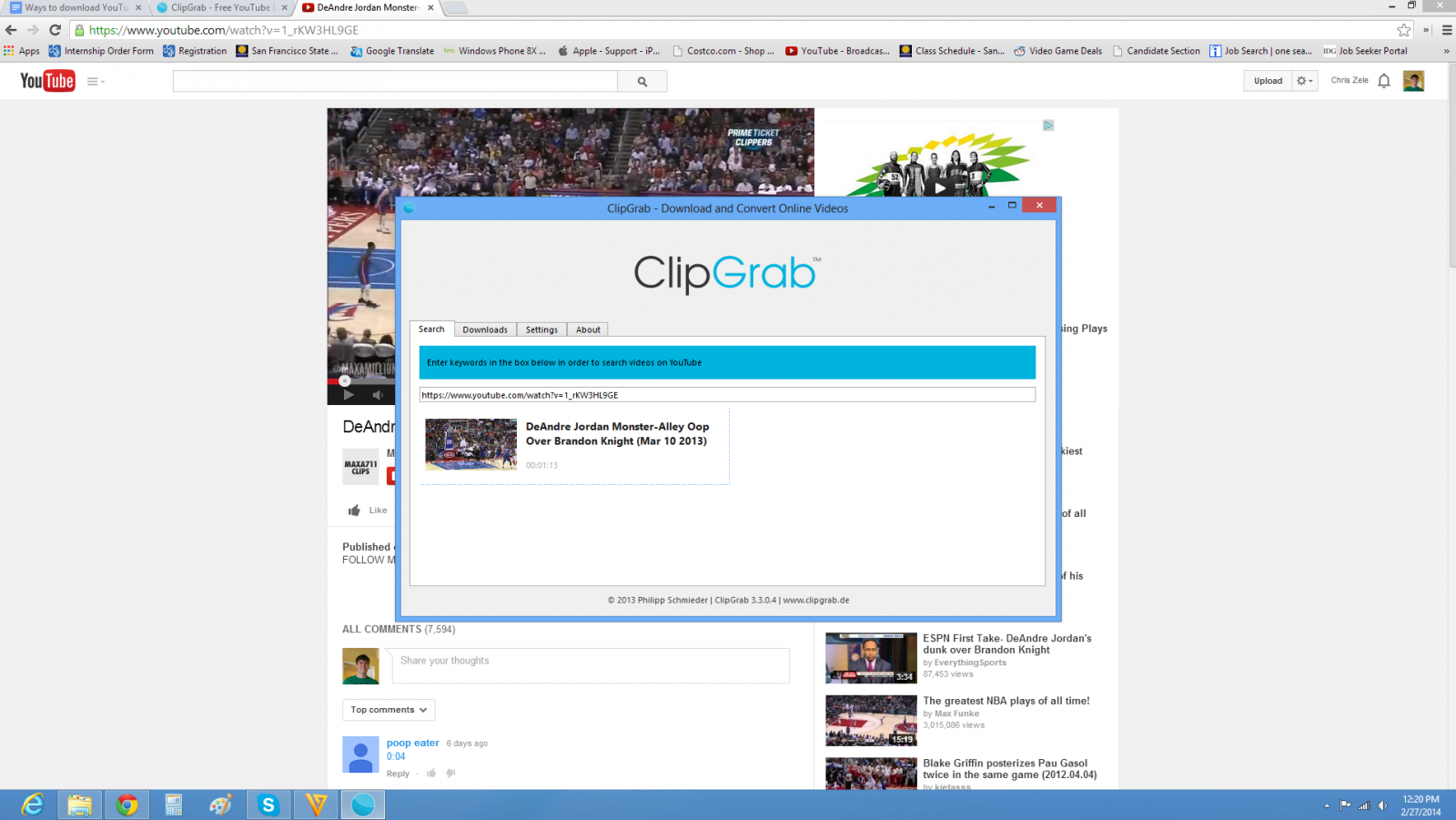 Bước 4: Click đúp vào biểu tượng Clip Grab để mở chương trình. Tiếp theo copy đường dẫn Youtube và dán vào thanh tìm kiếm của tab Search.