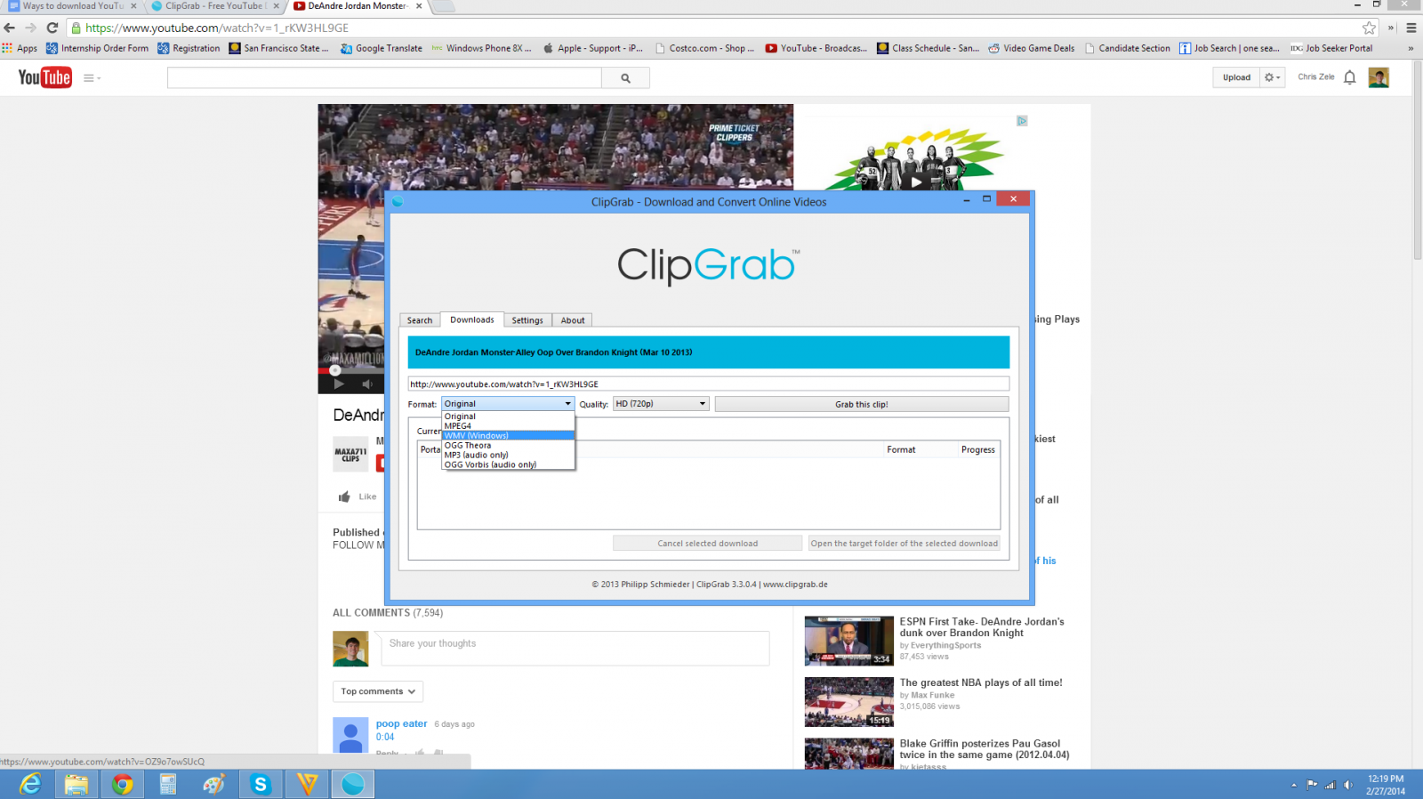 Bước 5: Click tab Download để chọn độ phân giải và định dạng video bạn muốn. Tiếp theo, click nút Grab This Clip để bắt đầu tải video.