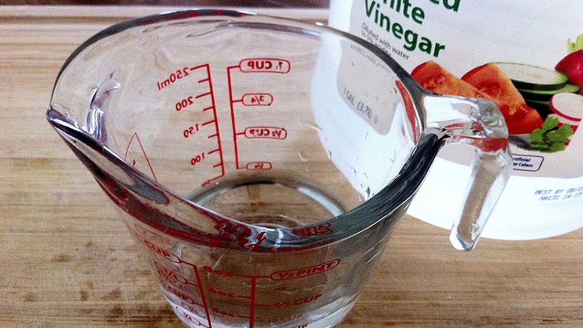 Chuẩn bị hỗn hợp gồm 50% nước cất và 50% dấm trắng.
