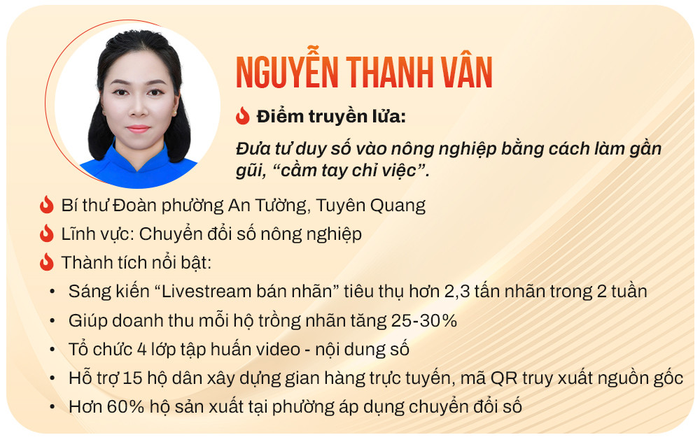Là Bí thư Đoàn phường An Tường (Tuyên Quang), chị Nguyễn Thanh Vân mang một khát vọng giản đơn nhưng đầy ý nghĩa: đưa nông dân tiếp cận công nghệ, đưa nông sản địa phương đến gần hơn với thị trường thông qua chuyển đổi số.
