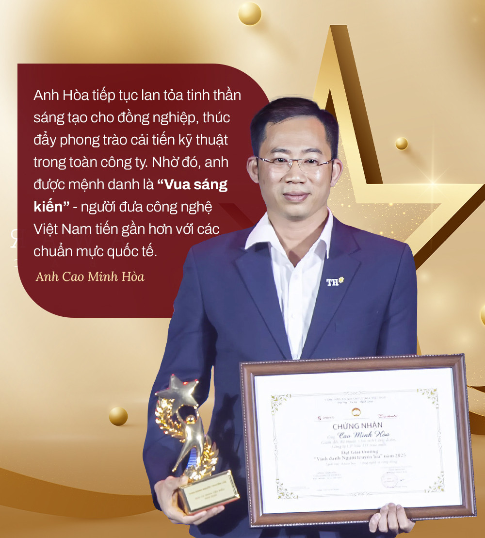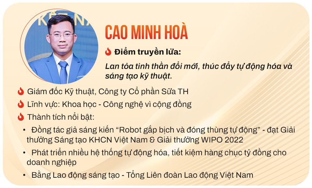 Trong lĩnh vực khoa học - công nghệ, anh Cao Minh Hòa, Giám đốc Kỹ thuật Công ty Cổ phần Sữa TH, là một trong những kỹ sư trẻ tiêu biểu với tinh thần đổi mới và khát vọng đưa tự động hóa vào dây chuyền sản xuất trong nước.