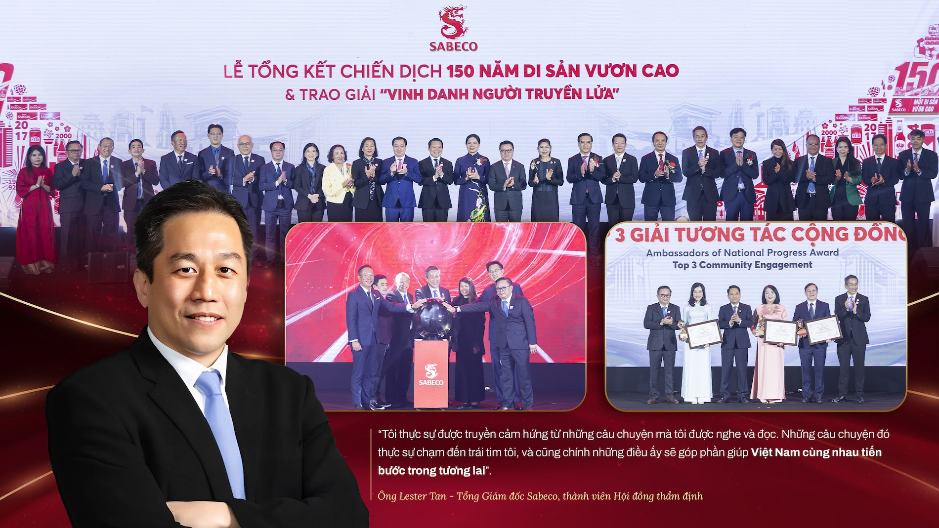 Tại vòng Chung khảo, ông Lester Tan - Tổng Giám đốc Sabeco, thành viên Hội đồng thẩm định - đã chia sẻ: “Với vai trò là một thành viên Hội đồng xét chọn hôm nay, tôi thực sự được truyền cảm hứng từ những câu chuyện mà tôi được nghe và đọc. Những câu chuyện đó thực sự chạm đến trái tim tôi, và cũng chính những điều ấy sẽ góp phần giúp Việt Nam cùng nhau tiến bước trong tương lai. Khi chúng ta tôn vinh những cá nhân tiêu biểu này, đó cũng là lời cảm ơn gửi đến tất cả mọi người vì đã chung tay xây dựng một Việt Nam tốt đẹp hơn, mạnh mẽ hơn trên hành trình phía trước”.