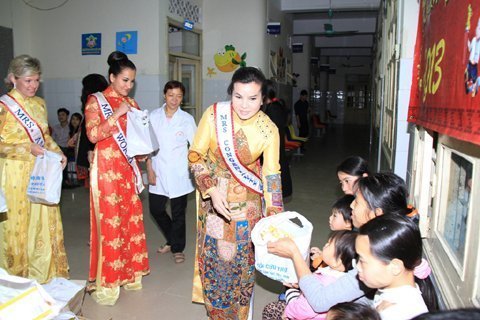 Không chỉ tham quan, mà đoàn hoa hậu còn kịp tham gia làm từ thiện tại một cơ sở từ thiện của Hà Nội, thể hiện trái tim nhân hậu của những người đẹp dành cho những số phận thiệt thòi.