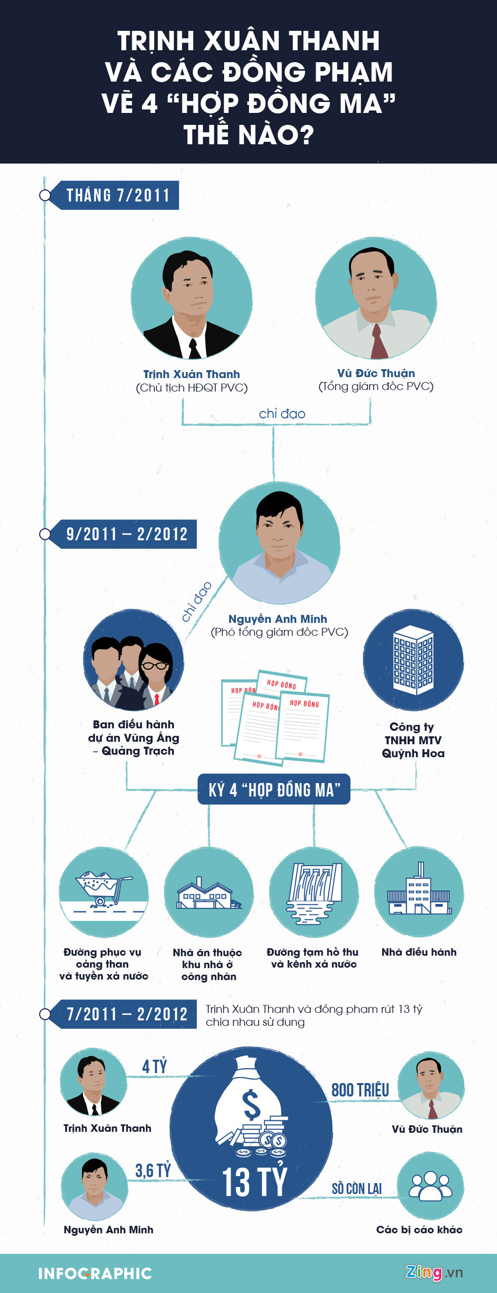 Cáo trạng thể hiện Trịnh Xuân Thanh chỉ đạo cấp dưới lập 4 "hợp đồng ma" thi công các hạng mục công trình để cùng tham ô 13 tỷ đồng.