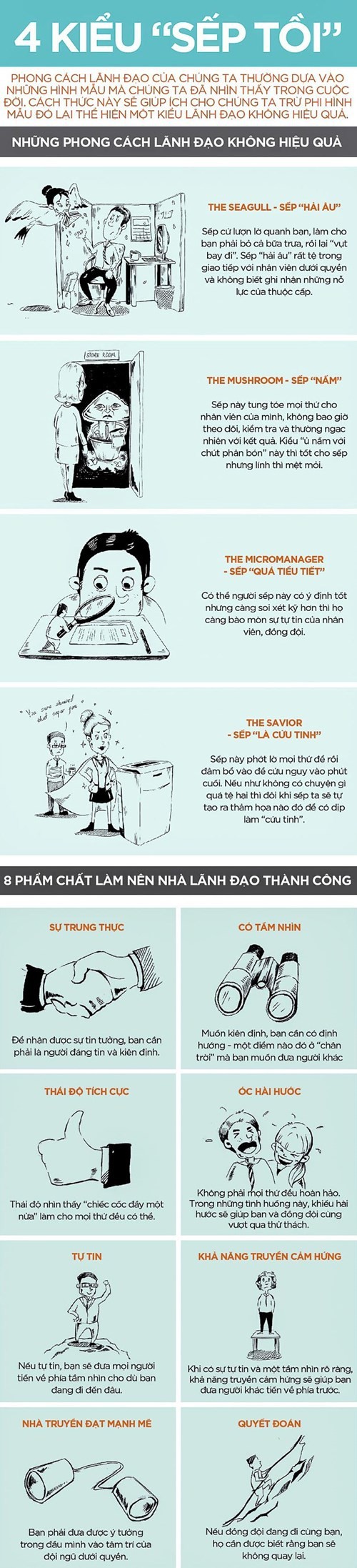 Infographic chia sẻ 4 phong cách lãnh đạo không hiểu quả, thể hiện qua những hình mẫu phổ biến chúng ta thường gặp trong cuộc sống.