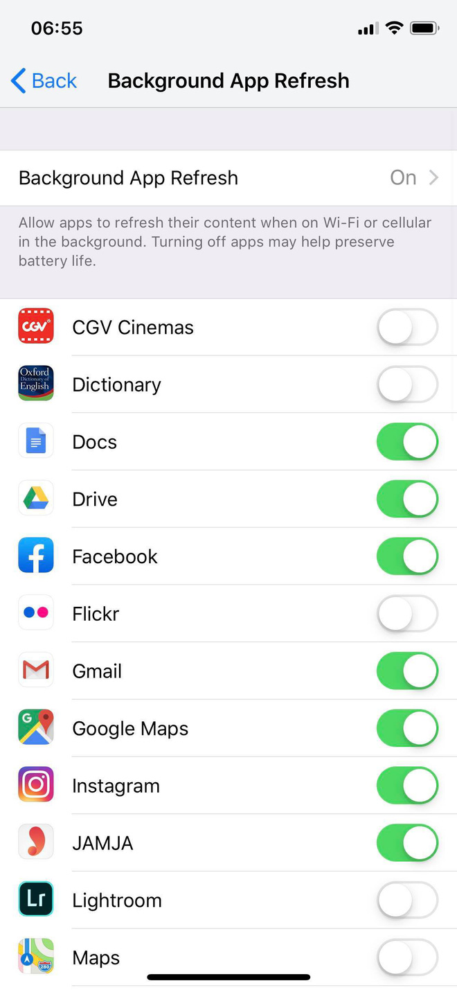 Để hạn chế điều ấy trên iPhone: Settings > General > Background App Refresh > Off (hoặc bật tắt chỉnh sửa tuỳ ý các ứng dụng có phép/không phép).