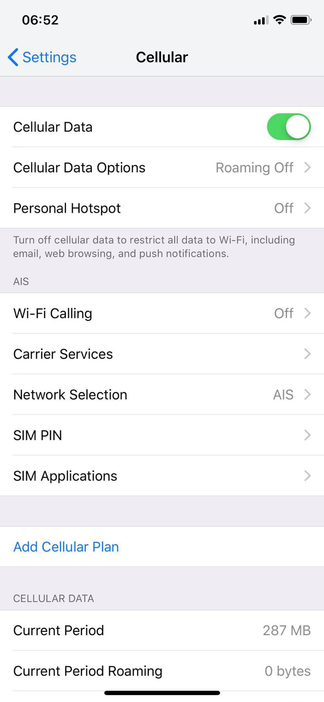 Để tắt chức năng chuyển vùng dữ liệu: Settings > Cellular > Cellular > Cellular Data Option > Data Roaming > Off.