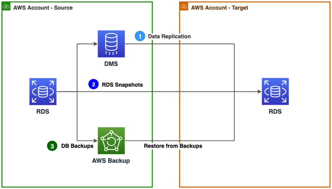 Cách 1: Sử dụng AWS Database Migration Service (AWS DMS). Doanh nghiệp có thể sử dụng AWS Database Migration Service (AWS DMS) để liên tục sao chép dữ liệu qua các tài khoản AWS với tính sẵn sàng cao. Cơ sở dữ liệu nguồn vẫn hoạt động bình thường trong suốt quá trình chuyển đổi, giảm thiểu downtime của các ứng dụng hoạt động dựa trên cơ sở dữ liệu. AWS DMS là một dịch vụ giúp tối ưu hóa quá trình chuyển đổi cơ sở dữ liệu relational, data warehouses, cơ sở dữ liệu NoSQL, và các loại dữ liệu khác.