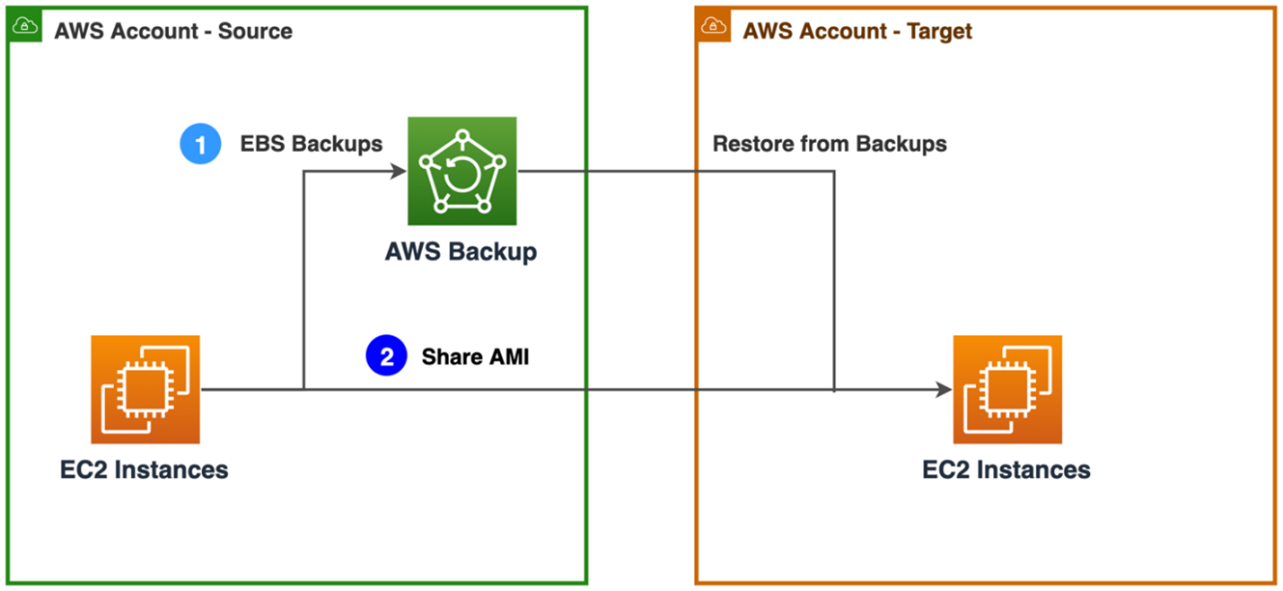Để chuyển đổi các máy chủ ảo EC2 có dữ liệu lưu trữ lâu dài trong các EBS, doanh nghiệp có thể sử dụng phương pháp AWS Backup và chia sẻ Amazon Machine Image (AMI).