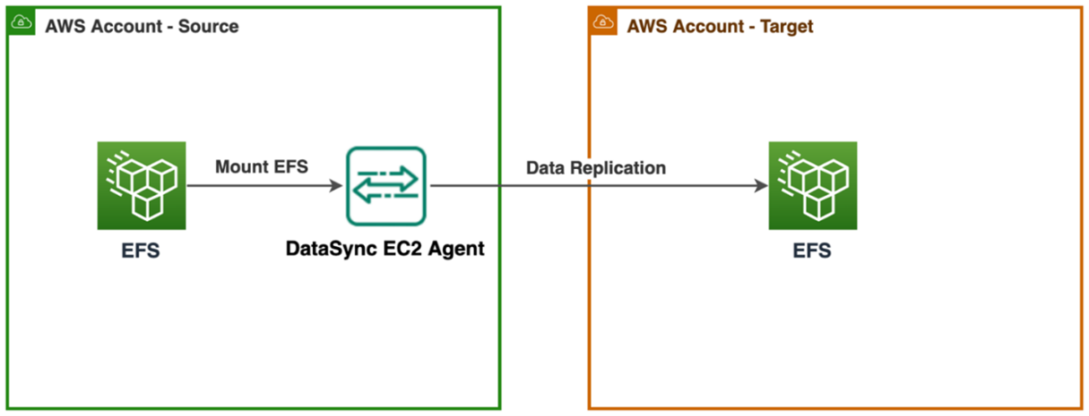 Doanh nghiệp có thể thực hiện việc di chuyển các tệp (files) từ Amazon EFS giữa các tài khoản bằng cách sử dụng AWS DataSync agent để chuyển đổi dữ liệu từ EFS ở tài khoản này sang EFS ở tài khoản khác. AWS DataSync là dịch vụ truyền tải online giúp sao chép và đồng bộ hóa một lượng lớn dữ liệu giữa các hệ thống lưu trữ ở on-premises và các dịch vụ lưu trữ trên AWS.