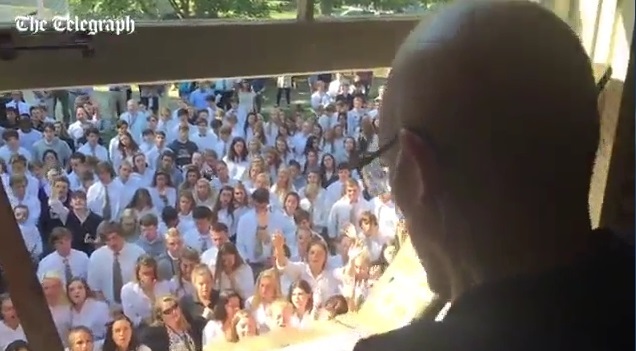 Những học sinh tới từ Học viện Kito giáo Presbyterian đã thể hiện tình yêu của mình với thầy giáo Ben Ellis bằng cách hát một bài thánh ca ở bên ngoài nhà của anh.