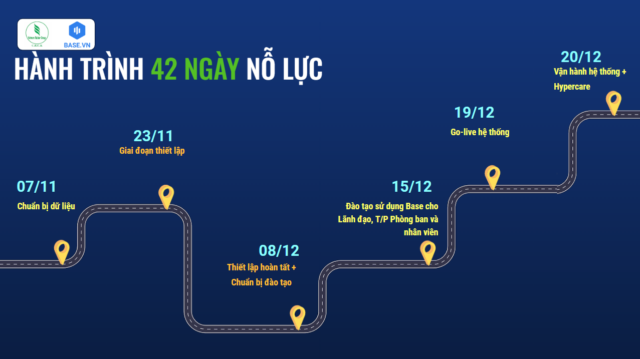 Bằng nỗ lực không ngừng, sau 42 ngày triển khai, Base đã thiết lập cho công ty CP Cao su Chư Sê - Kampong Thom 94 tài khoản cho đội ngũ nhân sự của 22 phòng ban, 57 quy trình trọng yếu được đưa lên ứng dụng Base Workflow, và 20 nhóm đề xuất cho các phòng ban Kế toán, Tổ chức hành chính, Kế hoạch đầu tư trên ứng dụng Base Request.