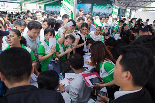 Quầy thủ tục của sự kiện luôn trong tình trạng“nhộn nhịp” khi rất đông khách hàng “chen chân” đặt cọc.