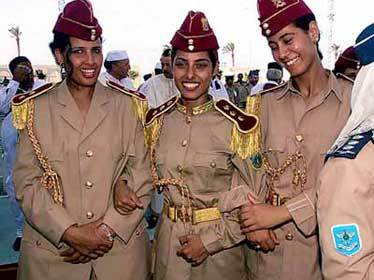 Đội nữ cận vệ của Tổng thống Libya luôn luôn gồm 40 cô gái xinh đẹp, mặc quân phục vàng nhạt, xanh dương, đội mũ nồi đỏ và được thay đổi liên tục. Họ luôn xuất hiện bên cạnh nhà lãnh đạo và là một phần đặc biệt quan trọng mỗi khi giới truyền thông nhắc đến ông Gaddafi. Điều đáng ngạc nhiên là các cô gái không chỉ là người Lybia mà có cả những người đến từ nhiều nước Ả rập như Tunisia, Lebanon, Syria... và phần lớn đều đã được đào tạo ở Học viện Quân sự phụ nữ Tripoli.