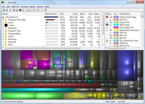 Để tìm hiểu chính xác mỗi chương trình đang chiếm bao nhiêu dung lượng ổ cứng, bạn có thể sử dụng một chương trình phân tích ổ cứng, ví dụ như WinDirStat. Các ứng dụng kiểu này sẽ quét ổ cứng và hiển thị chính xác các file hoặc folder này đang chiếm nhiều dung lượng nhất.