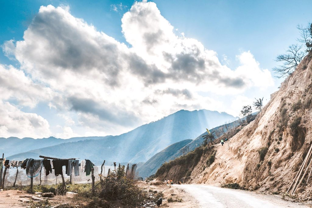 Con đường nhựa chạy dọc theo triền núi, quanh co uốn lượn nên rất ít xe lớn qua lại. Tới đây, bạn cứ thể thong dong cầm lái, thả mình giữa biển trời và tận hưởng trọn vẹn cảm giác yên bình, thư thái dịp đầu năm mới.