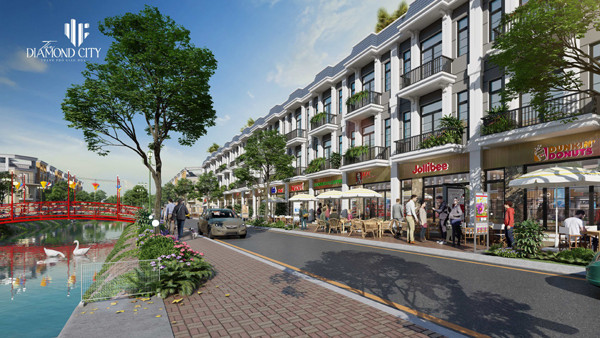 11.300 m2 diện tích dự án để triển khai tiện ích “3 trong 1”: Live - Work - Play dành cho các gia đình trẻ với tiêu chí” làm việc tại khu công nghiệp liền kề - sống và giải trí trong dự án The Diamond City”. Tiện ích bao gồm: Khu thương mại chuẩn Singapore, Trường mẫu giáo phong cách Nhật, Tổ hợp thể thao Champion: Hồ bơi & sân tennis, Công viên sắc màu Color Park 1,2, 3, Quảng trường Hà Lan: gồm Tháp biểu tượng Time Square, kênh tự nhiên Giethoorn, Cầu ước nguyện Dream River tạo thành một tuyến phố thương mại sầm uất, kinh doanh nhộn nhịp và cảnh quan độc đáo của dự án.