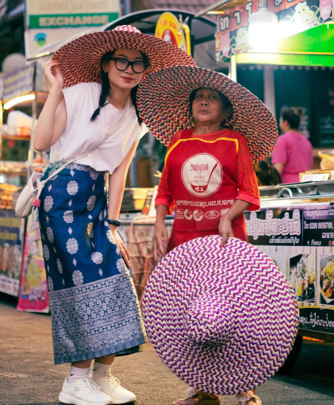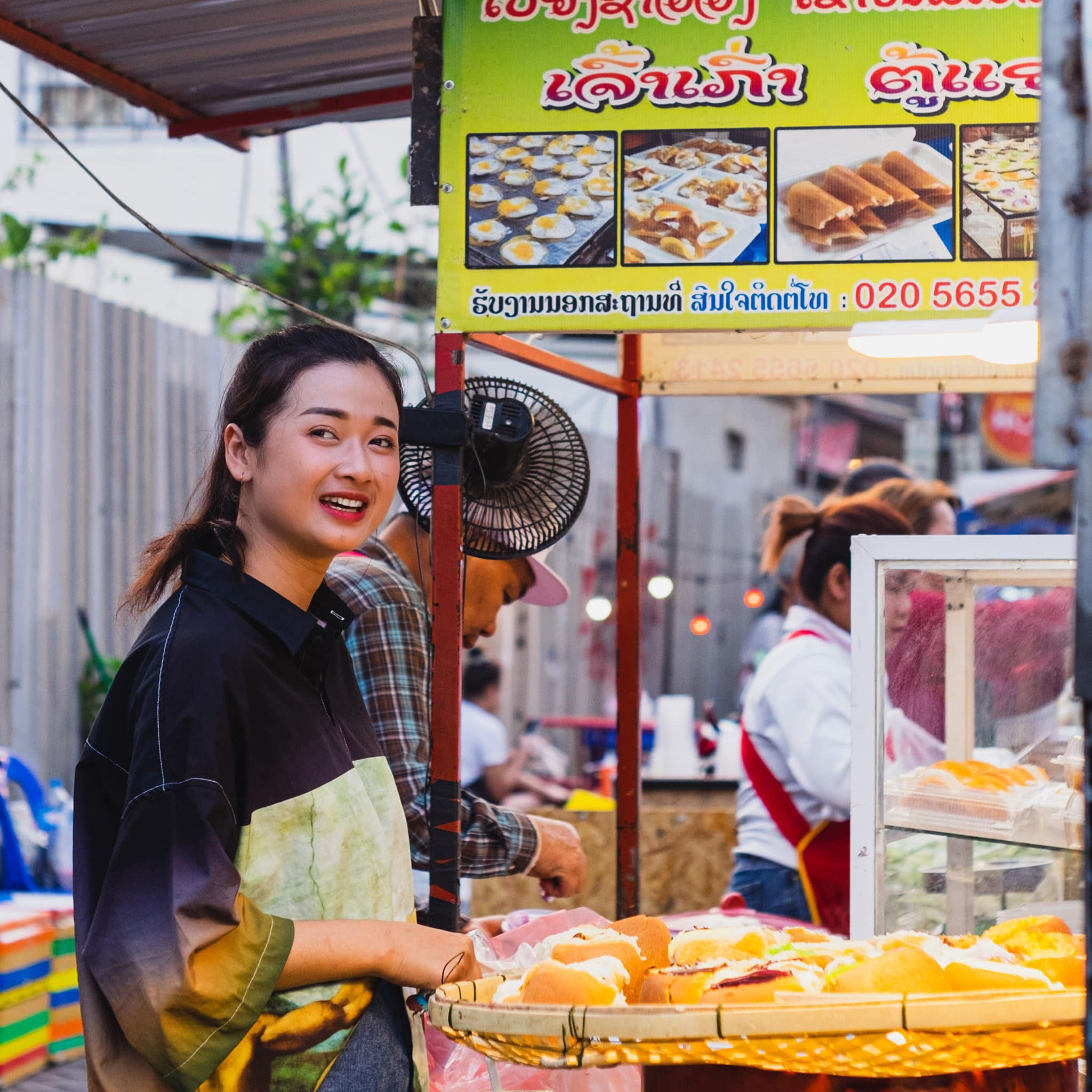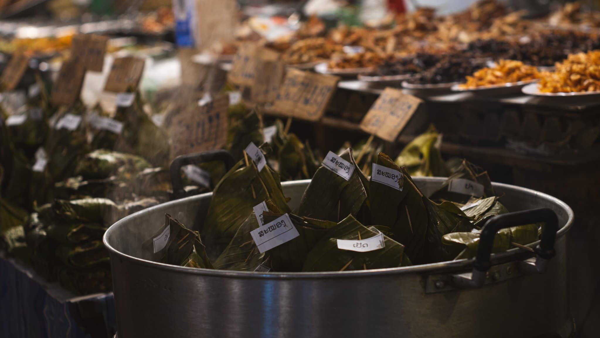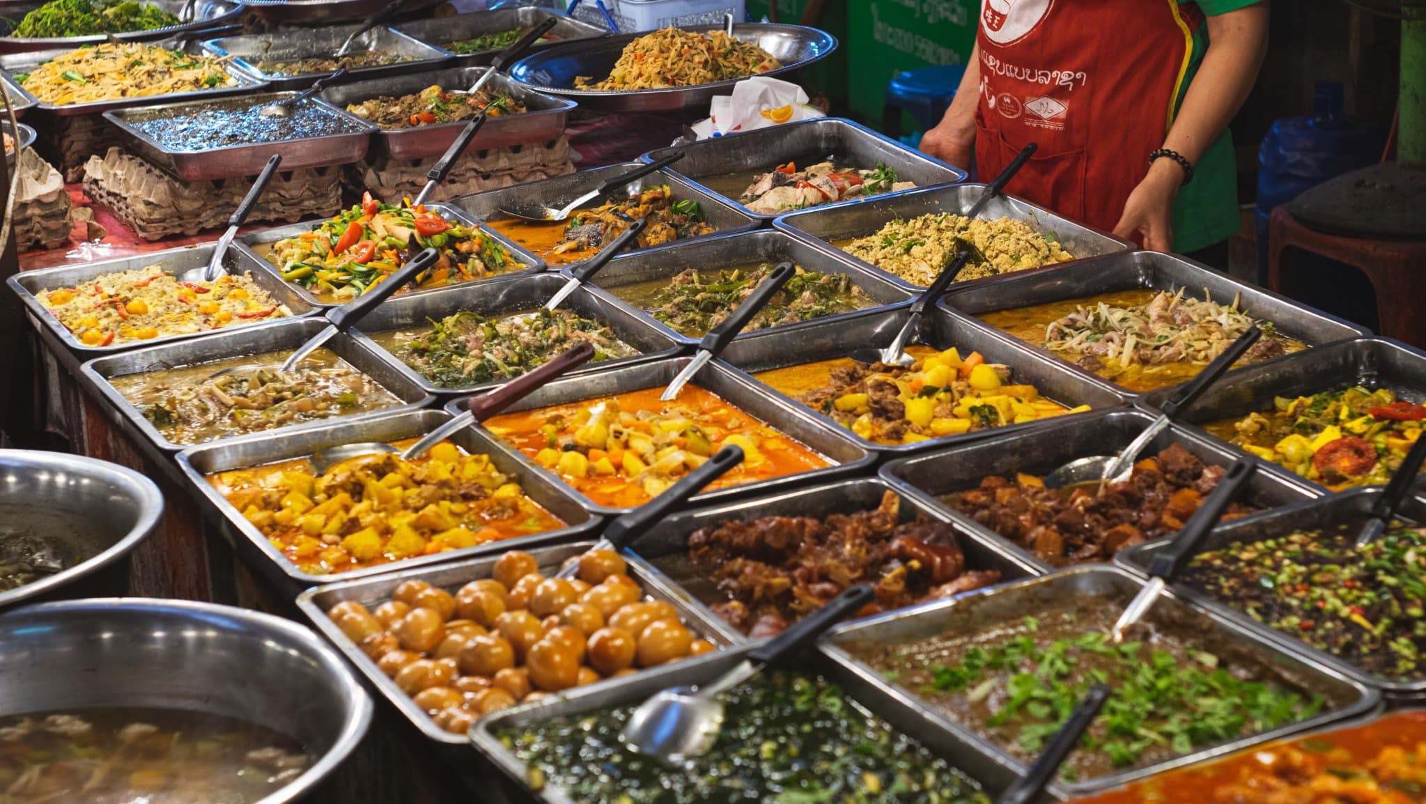 Một khu chợ ở Viêng Chăn, nơi Mai khám phá văn hóa ẩm thực LàoMai kể rằng: "Tại khu chợ mình thấy nam giới đi chợ nhiều lắm."Ở Lào các món ăn được chế biến sẵn rất đa dạng