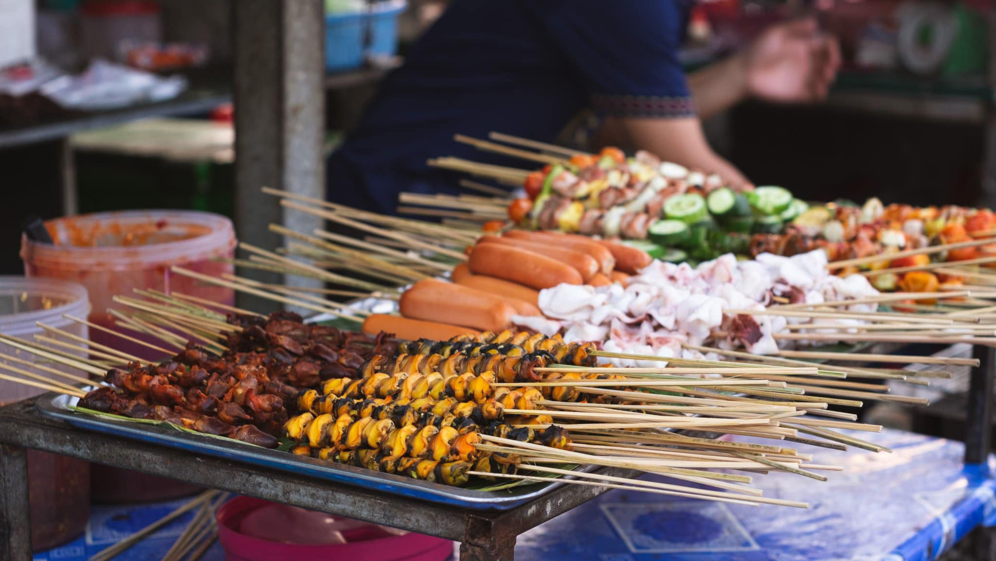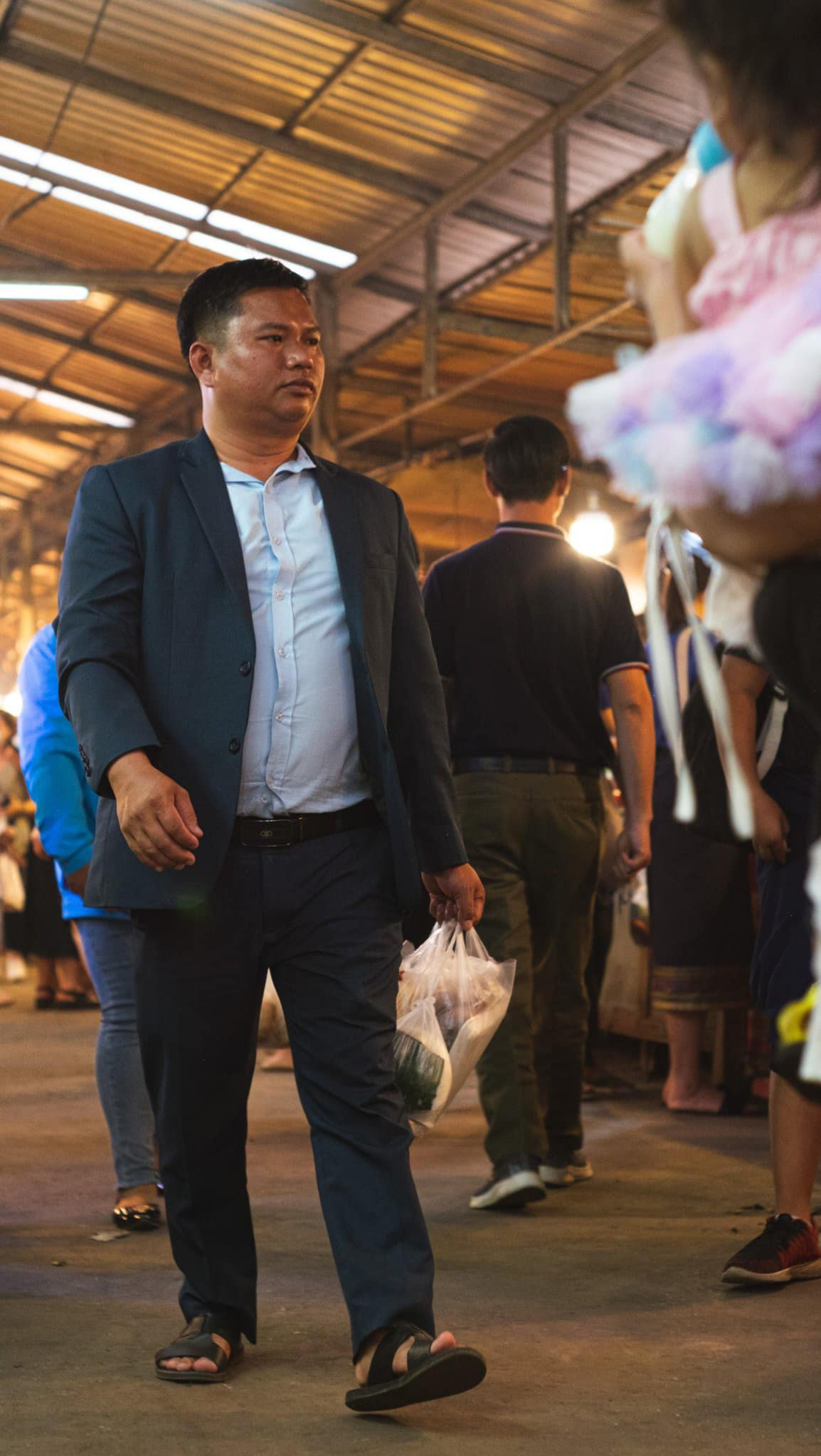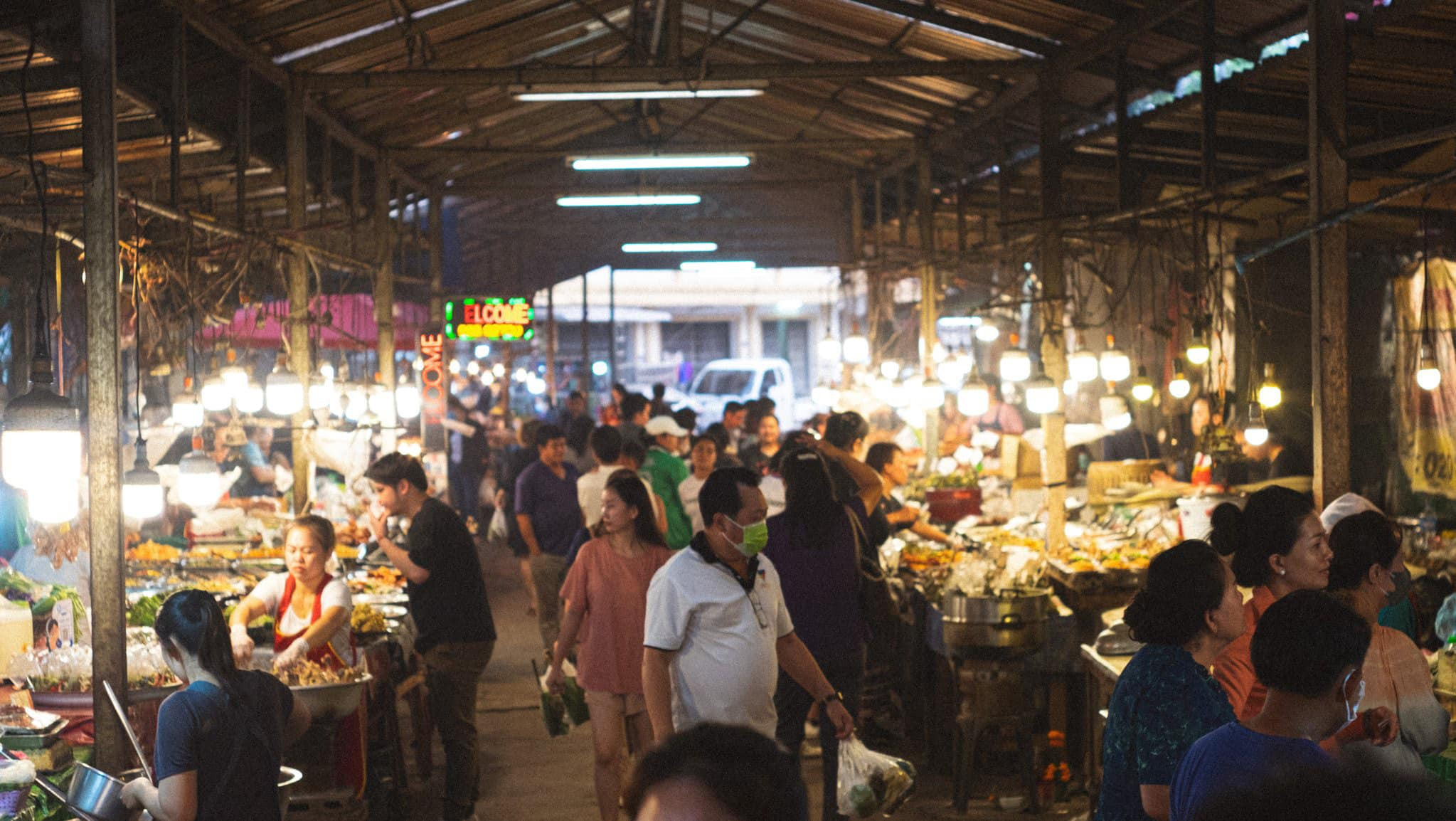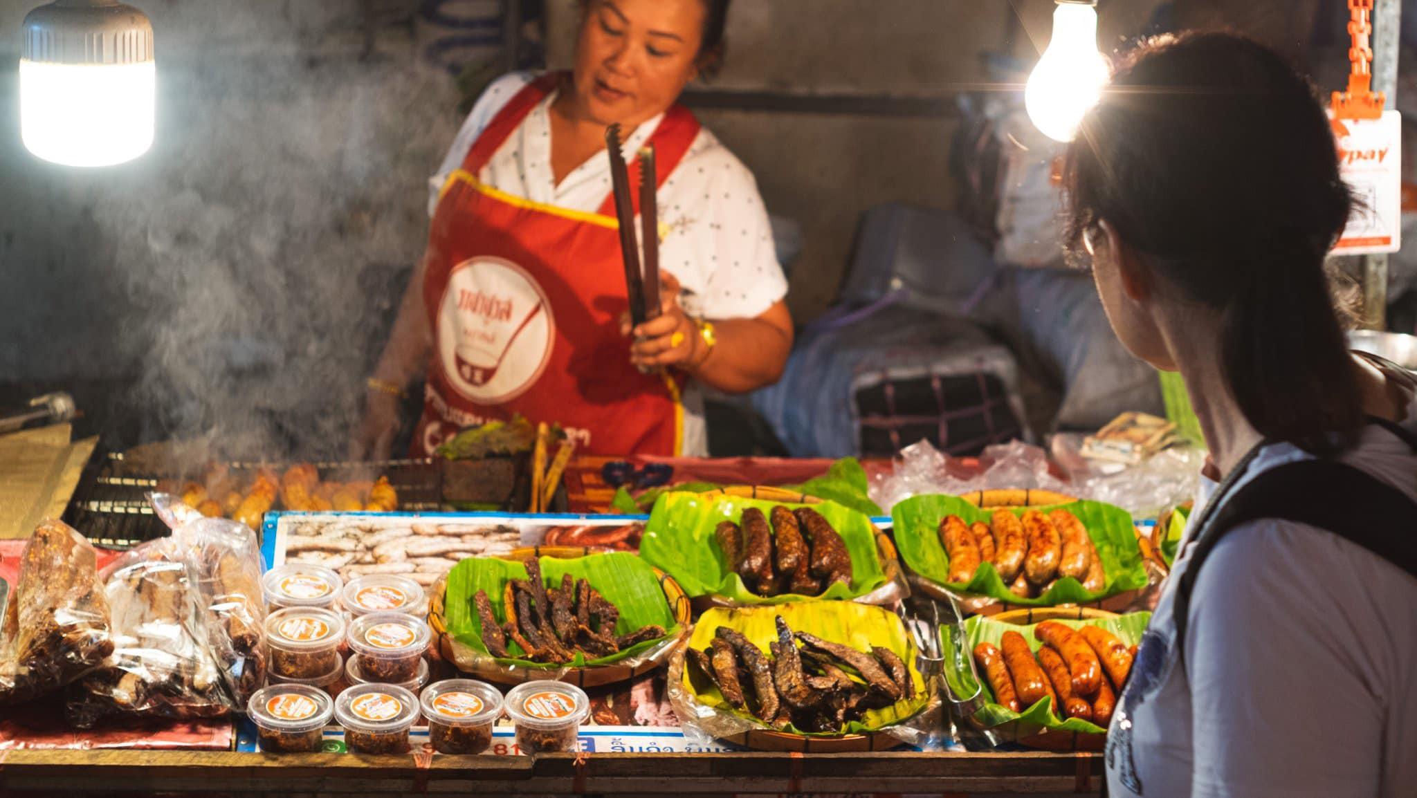 Một khu chợ ở Viêng Chăn, nơi Mai khám phá văn hóa ẩm thực LàoMai kể rằng: "Tại khu chợ mình thấy nam giới đi chợ nhiều lắm."Ở Lào các món ăn được chế biến sẵn rất đa dạng