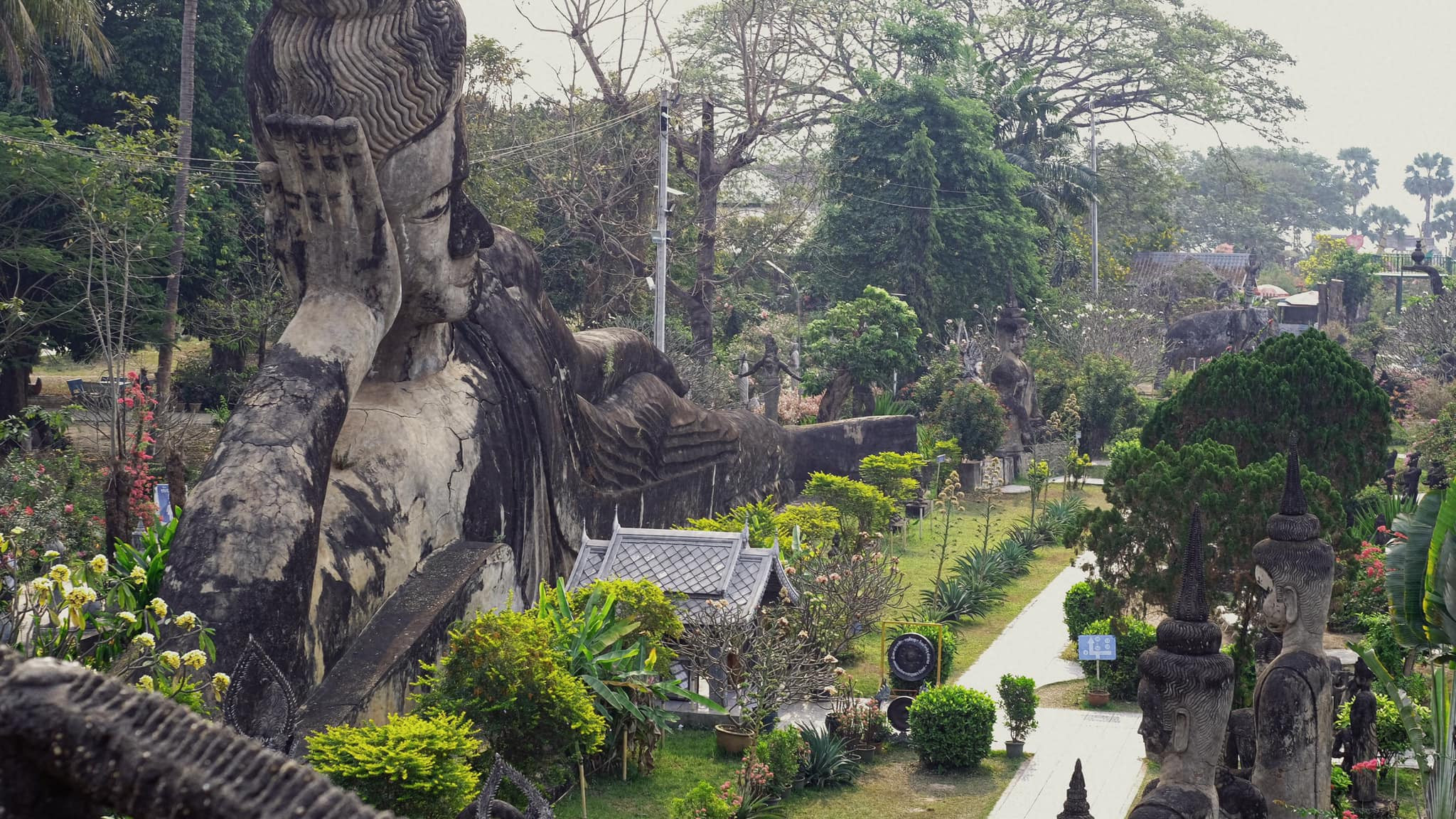 Vườn Tượng Phật (hay còn gọi là Xieng Khuang Buddha Park) là một khu vườn điêu khắc nổi tiếng với hơn 200 pho tượng Phật và tượng Hindu, được đúc bằng xi măng với nhiều hình dáng và ý nghĩa khác nhau.Vườn Tượng Phật do tu sĩ nổi tiếng Luang Pu Bunleua Sulilat, một tu sĩ nghiên cứu cả Phật giáo và Ấn Độ giáo quyên góp xây dựng vào năm 1958. Điều này giải thích lý do tại sao khu vườn này không chỉ đầy đủ các bức tượng Phật mà còn có các bức tượng của các vị thần Hindu cũng như ma quỷ và linh vật từ cả hai tín ngưỡng.Giữa trung tâm Vườn tượng Phật nổi bật lên bức tượng Phật nằm khổng lồ, dài khoảng 40m, dáng vẻ thảnh thơi như tư thế Phật tổ nhập Niết Bàn. Gương mặt Đức Phật bình dị, thanh thoát, bao dung với vầng trán rộng, mắt khép nhẹ, môi mỉm cười.