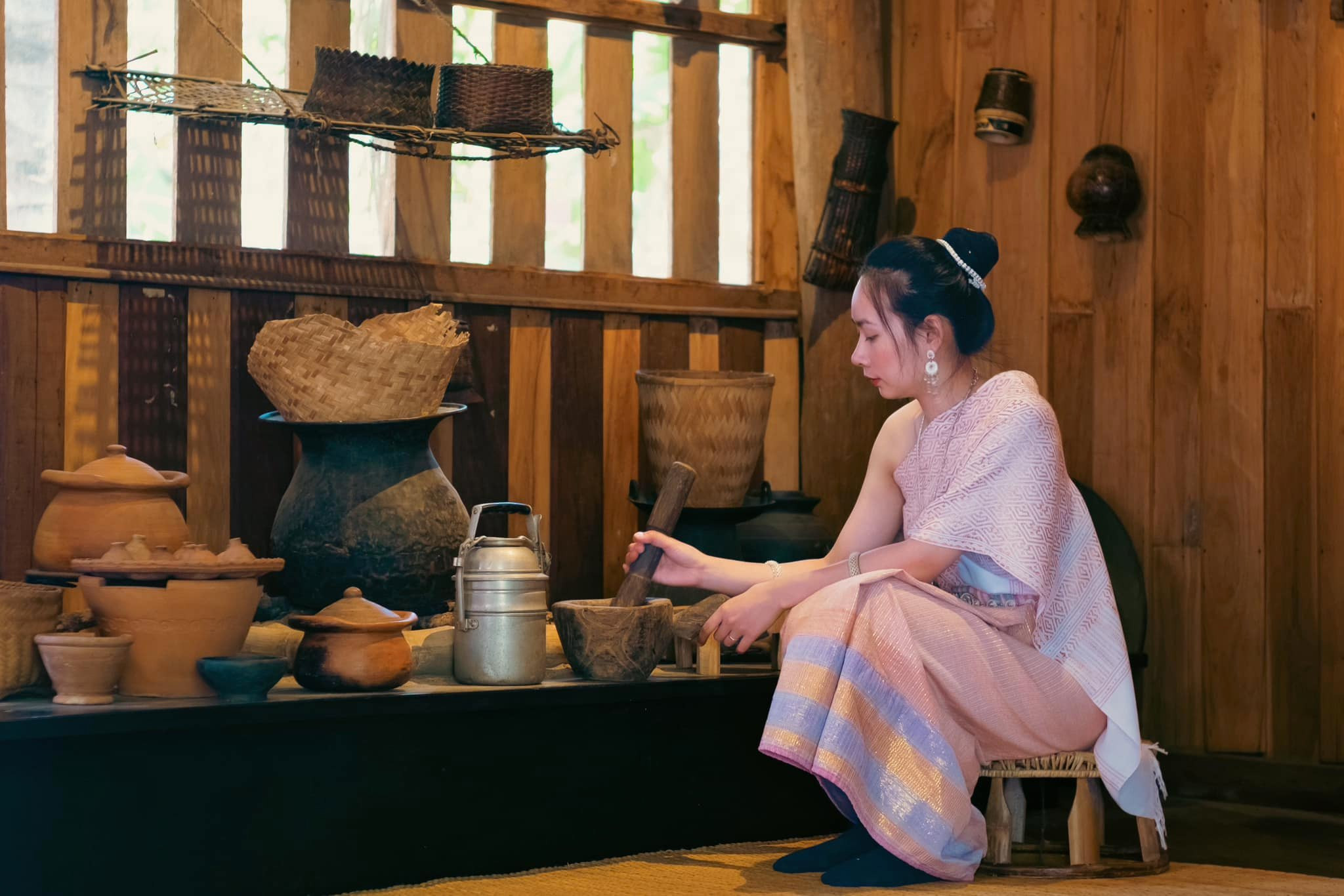 Phố cổ Luang Prabang được UNESCO công nhận là Di sản thế giới năm 1995. Thành phố nhỏ này từng là nơi sinh sống của Hoàng gia Lào. Trong ảnh là Cung điện Hoàng gia Lào, nơi chứng minh cho sự giàu có xa xưa, giờ đây trở thành Viện bảo tàng. Khách du lịch đến Luang Prabang hòa mình vào cảnh vật, sự bình yên của vùng đất nàyĐường chính khu phố cổ năm 2023 gợi cho cô gái trẻ cảm giác nhìn xưa thật xưa nhưng cũng gần thật gần. Đi bộ dọc theo con phố các bạn có thể ghé vài bất cứ hàng quán nào bán những đồ trang sức, đồ trang trí, may mặc thủ công đủ màu sắc, chủng loại sặc sỡ. Từ những tác phẩm nghệ thuật, bưu thiếp, những quầy pashima đẹp mắt và thậm chí cả đồ trang sức làm từ bom rơi xuống Lào những năm 1960 và 1970, có những tấm biển giải thích về lịch sử của chúng, khuyến khích khách hàng “mua lại những trái bom”.Với những nếp nhà mang nét kiến trúc Lào cổ pha với kiến trúc Đông Dương nằm liền kề nhau khiến Luang Prabang hiện lên thật yên ả, cổ kínhNét cổ kính, yên bình của Luang Prabang chinh phục du khách gần xaHeuan Chan Heritage House là tên một ngôi nhà gỗ có từ thế kỉ 19 nằm ở vị trí trái tim của cố đô Luang Prabang. Đây là một dinh thự quý tộc đúng nghĩa thời tiền thuộc địa. Tại đây hiện còn lưu giữ đồ sinh hoạt, bố trí trong các gian phòng và cả trang phục. Ngôi nhà gỗ cùng khuôn viên nên thơ nằm trong một con ngõ nhỏ mà theo cảm nhận của Mai là "tình ơi là tình", có cả quán cafe nằm và ngồi tại vườn. Mai gợi ý: "Nếu tới đây tham quan, hãy thuê đồ Lào để mặc và chụp hình vì đẹp lắm. Dịch vụ combo mặc đồ, làm tóc, cài phụ kiện và đồ make up chỉ có giá 50.000-100.000 kip (khoảng 70.000 - 140.000 đồng)