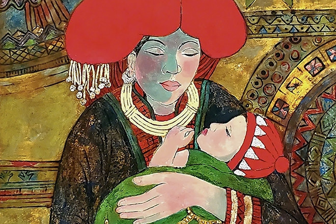 Không chỉ dừng lại ở hình ảnh, nhiều tác phẩm gây ấn tượng bởi việc sử dụng chất liệu bản địa như đất, than, dấu vết thực vật… Những yếu tố tưởng chừng thô mộc ấy trở thành phương tiện biểu đạt, mang theo ký ức, cảm xúc và cả chiều sâu văn hóa của vùng đất cao nguyên.