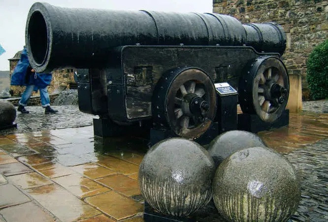 Pháo Mons Meg của Scotland có cỡ nòng phi thường là 520mm, được sử dụng từ năm 1449 đến năm 1680. Mục đích chính là phá vỡ các bức tường pháo đài thành cát bụi với sự trợ giúp của các viên đạn bằng đá, kim loại và đá-kim loại. Mons Meg từng được xem là một trong những loại vũ khí nguy hiểm nhất thế giới. Khẩu pháo này nặng lên tới 6 tấn, mỗi lần có thể bắn ra một viên đạn bằng đá nặng 450kg, tầm bắn là 3,2km. Ở thế kỷ 15, Mons Meg là vũ khí quan trọng để phòng thủ cho thành phố Edinburgh của Scotland. Mons Meg từng được kéo đi 50 dặm (hơn 80km) để đánh chiếm pháo đài Roxburgh năm 1460, mãi đến năm 1829, Mons Meg mới được đưa trở lại pháo đài. Theo các tài liệu, Mons Meg là món quà của Duke Philip xứ Burgundy tặng cho vua James II năm 1457.