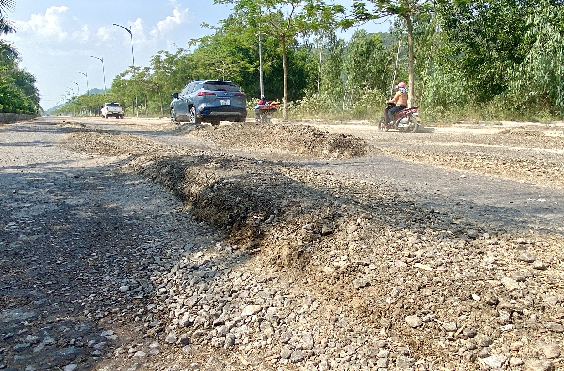 Theo ghi nhận, nhiều điểm trên đoạn đường xuất hiện sụt lún, có điểm lún sâu đến gần 40cm, mặt đường tạo thành những hố lõm sâu và điểm gợn sóng. Đoạn đường, nhựa đường đứt gãy, bong tróc, ùn thành đống tạo thành những điểm nhấp nhô trên mặt đường...