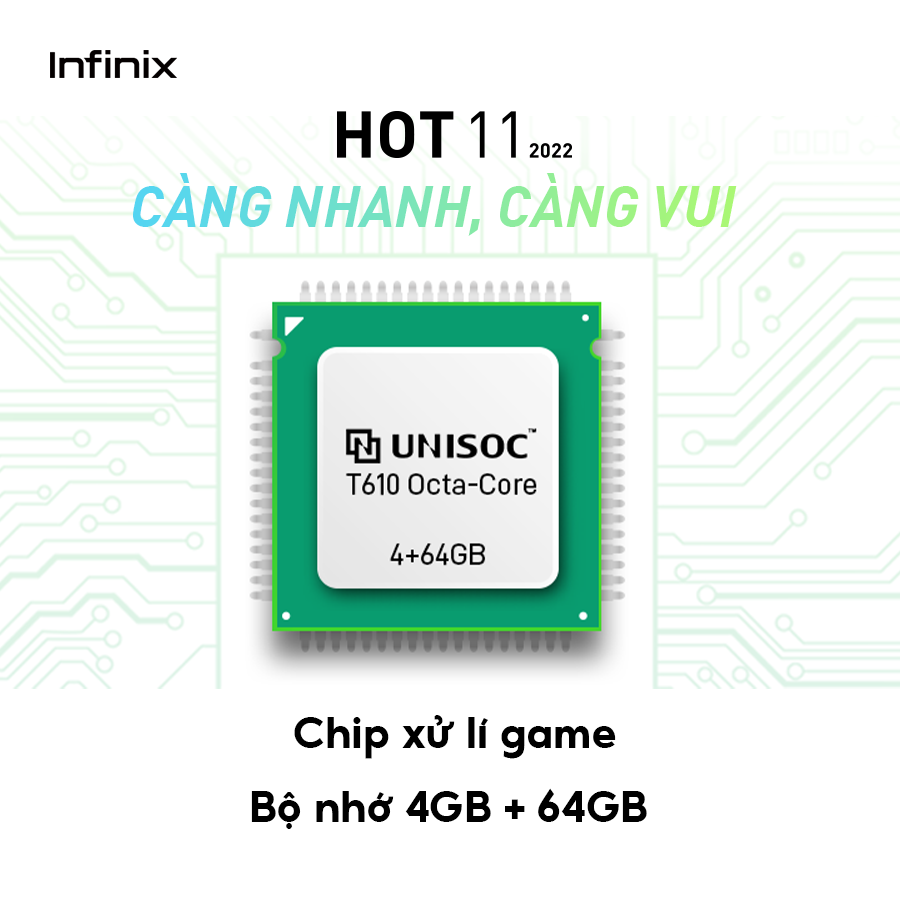 Sở hữu chip 8 nhân Unisoc T610, HOT 11 2022 được thiết kế để mang đến cho bạn những trải nghiệm chơi game và xem video cực kỳ mượt mà, sống động.