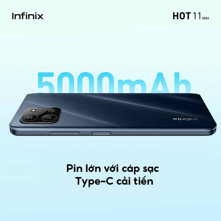 22 giờ đàm thoại, 34 giờ nghe nhạc, 16 giờ xem video, 6 giờ chơi game liên tục - là những gì viên pin 5000mAh của Infinix HOT 11 2022 mang đến cho người sử dụng.