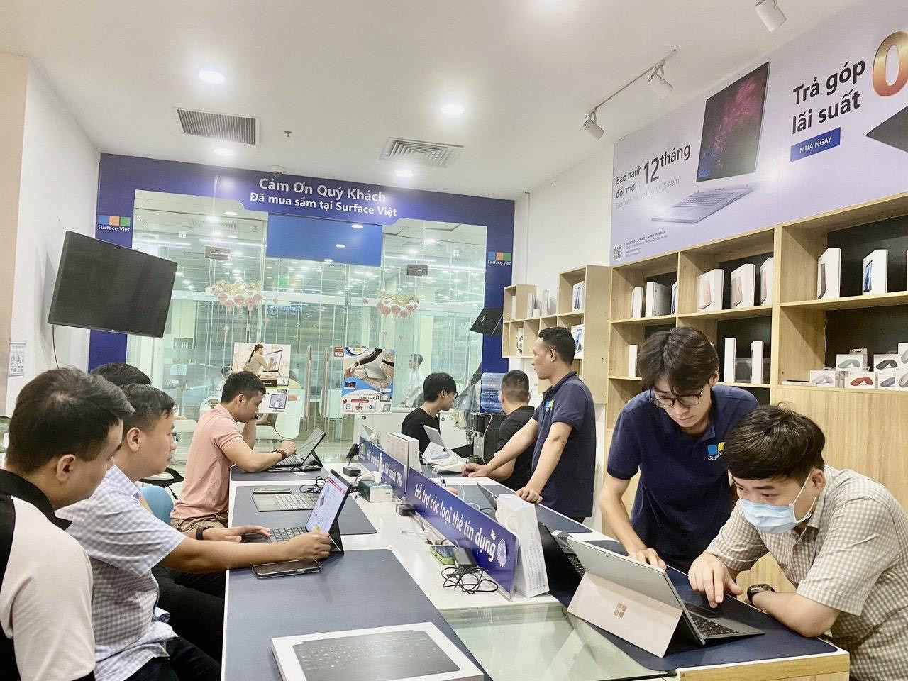 Khách hàng có thể trực tiếp đến cửa hàng để trải nghiệm tất cả các dòng laptop của Surface. Đội ngũ nhân viên chuyên nghiệp của Surface Việt cũng sẽ tư vấn giúp khách hàng lựa chọn được sản phẩm phù hợp nhất.