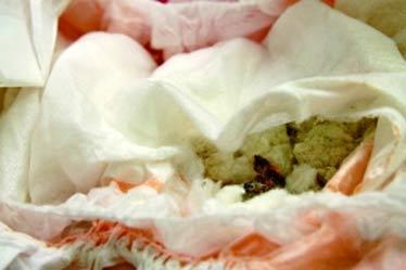 Anh Pan Lao (ở làng Nanzhuang, Nam Hải, Quảng Đông, Trung Quốc) cho biết, 1 tháng trước đây, trong lúc thay bỉm cho bé Xiaowei, vợ anh thấy cậu bé cứ khóc và tay luôn quờ xuống phía dưới bộ phận sinh dục. Khi nhìn kĩ, chị thấy bộ phận sinh dục của con bị sưng tấy. Vợ anh Pan đã kiểm tra chiếc bỉm và phát hiện có vật cứng cộm trong chiếc tã ướt.