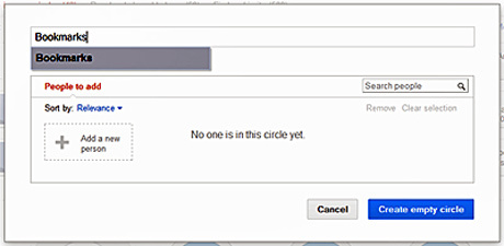 Trước tiên, truy cập vào tabCircles. Tạo một Circle mới, đặt tên cho nó (ví dụ, "Bookmarks"). Chưa vội thêm bất kì ai vào đây cả.