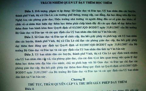 Đáng chú ý trong quyết định số 66, UBND tỉnh Nghệ An đã quy định việc tổ chức dạy thêm, học thêm bên ngoài nhà trường phải được cơ quan chức năng cấp phép, giám sát, quản lý.