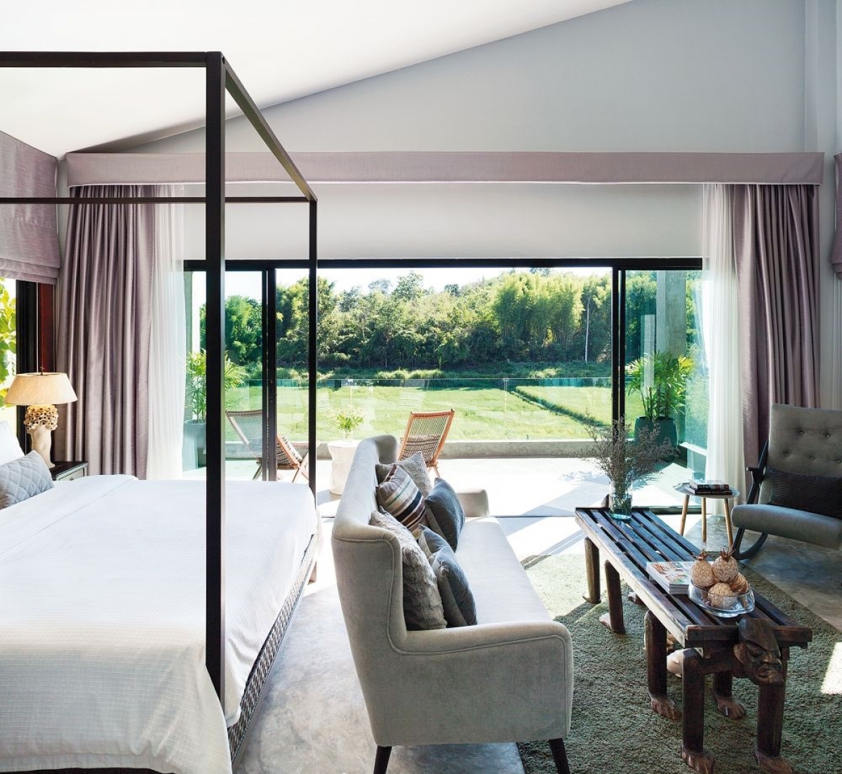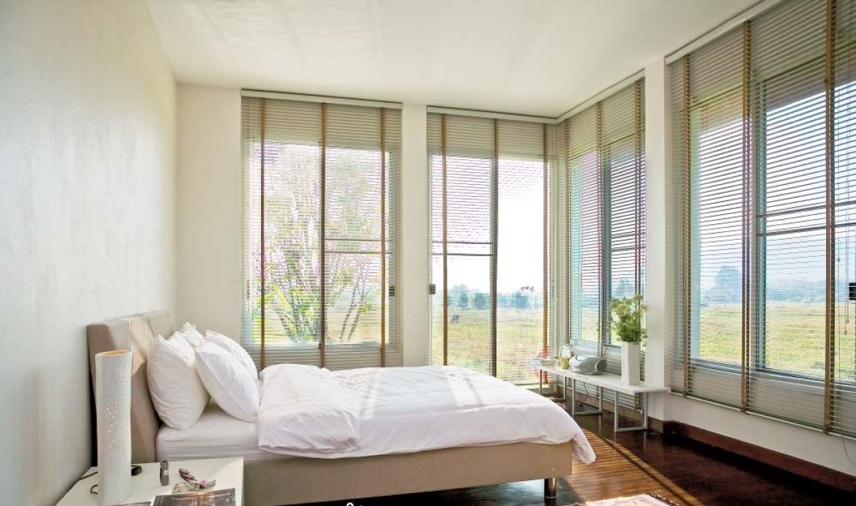 Với những cánh cửa cao, lớn mang ánh sáng, thiên nhiên ngập tràn, giúp chủ nhân có một giấc ngủ nhẹ nhàng, bình lặng khác hẳn với chốn xô bồ, bí bách nơi phố thị.