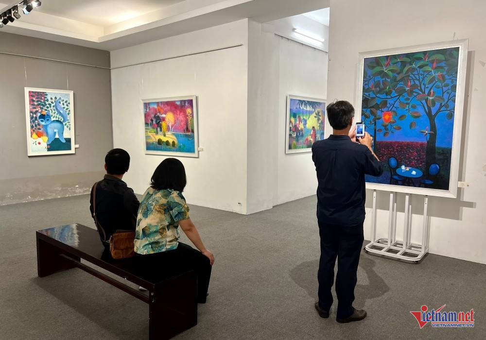 Chia sẻ với VietNamNet, họa sĩ Ngô Đăng Hiệp xúc động khi có cơ hội triển lãm cùng các học trò mà ông dạy cách đây 25 năm. Trong số đó, có những người ông chỉ giữ liên lạc qua Facebook và chưa từng gặp lại.