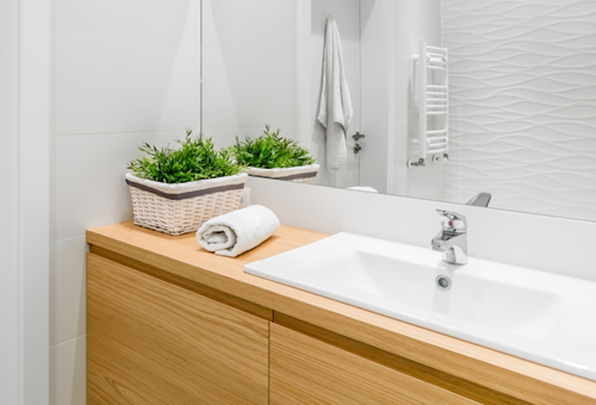 Thay vì dùng kiểu bàn này, bạn có thể dùng bàn trang điểm như bình thường có thêm các ngăn để đồ trước mặt giúp không gian không bị lộn xộn.